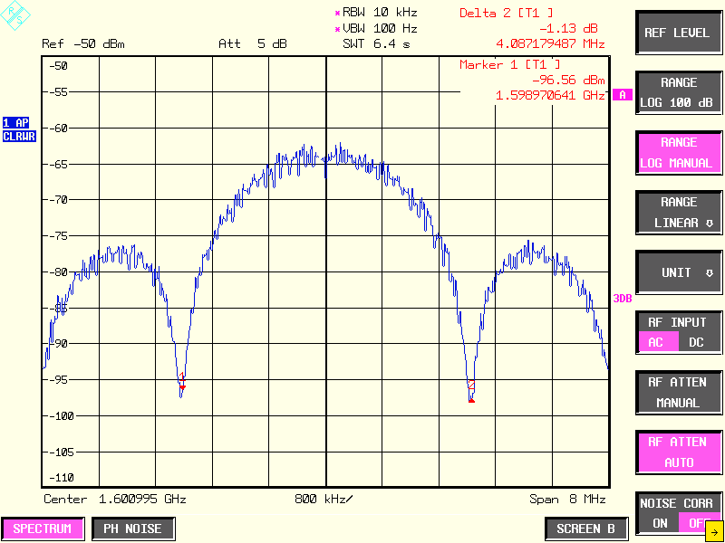 Файл:20110714 Спектр смеси BOC(1,1) и BPSK(1).PNG